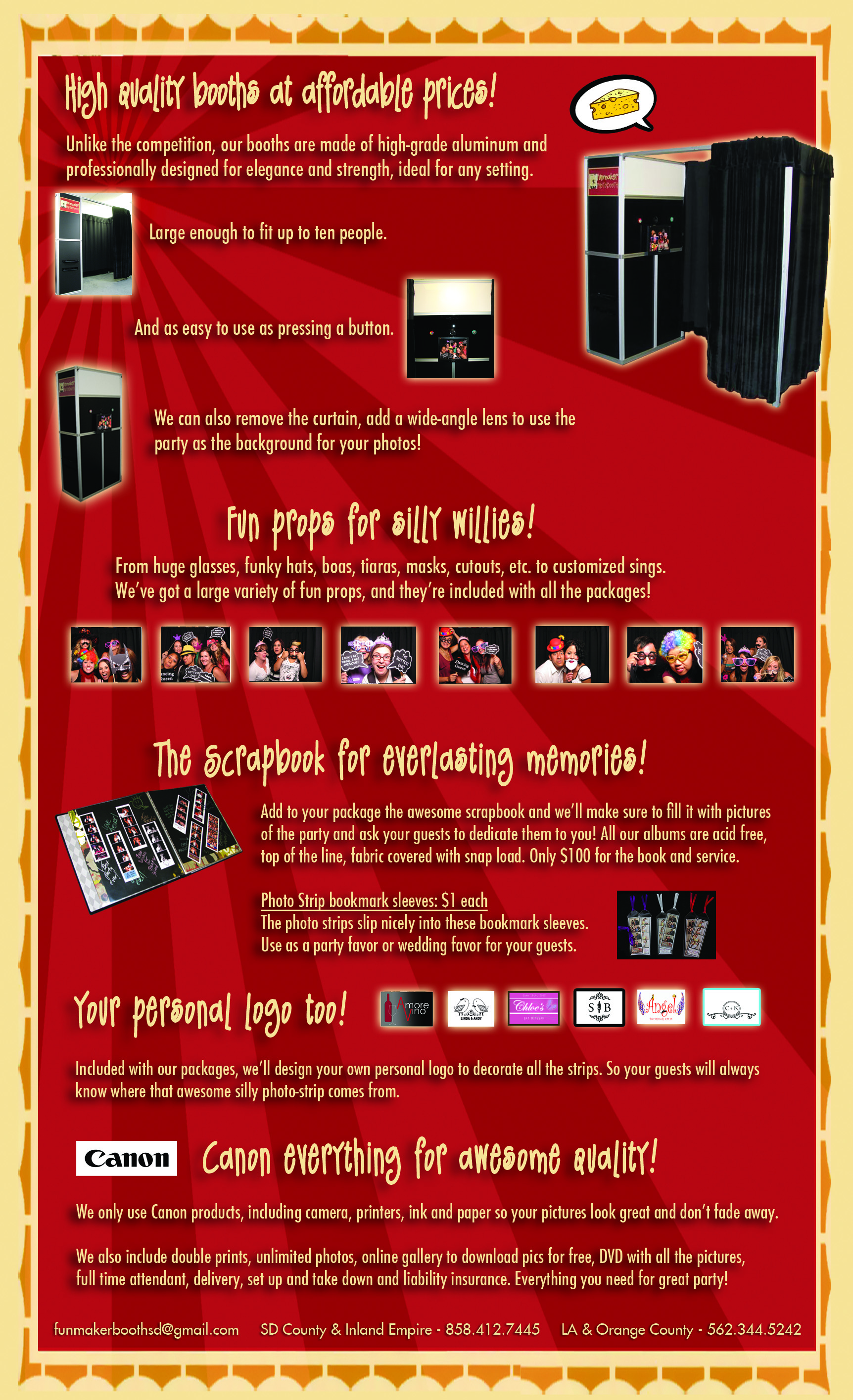 FUNMAKER PHOTO BOOTHS has the right booth for any event. If you're looking for an affordable, yet elegant and awesome photo booth, then you're at the right place.